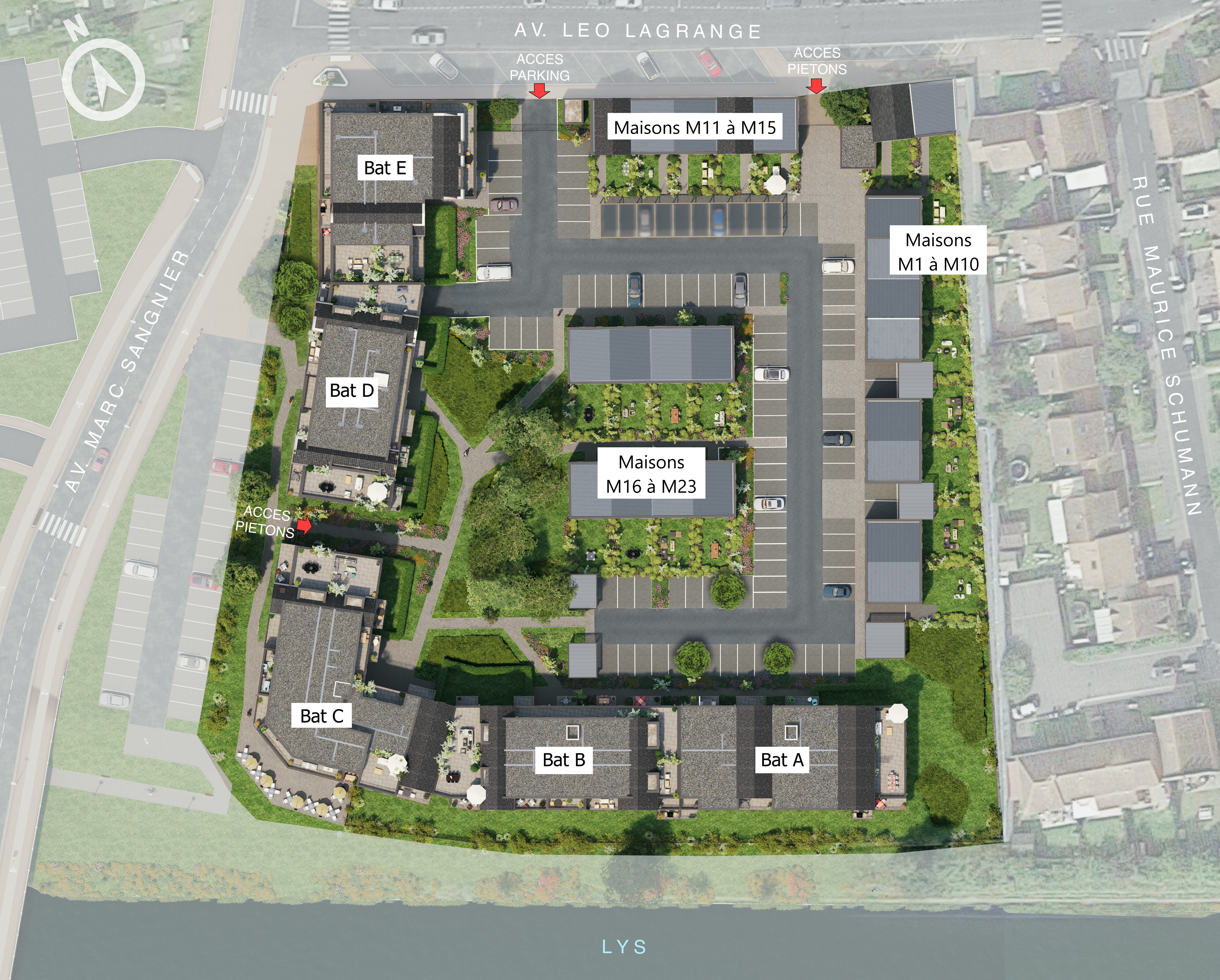 De beaux appartements restent disponibles, du studio au 4 pièces, avec jardin, balcon ou terrasse. Plusieurs appartements profitent de belles terrasses plein ciel et de superbes vues sur la Lys. Les maisons de 2 et 3 chambres disposent d'agréables espaces extérieurs pour la majorité. Certifiés RE 2020, ils offrent un confort durable et une qualité de vie rare à 20 min* de Lille.
