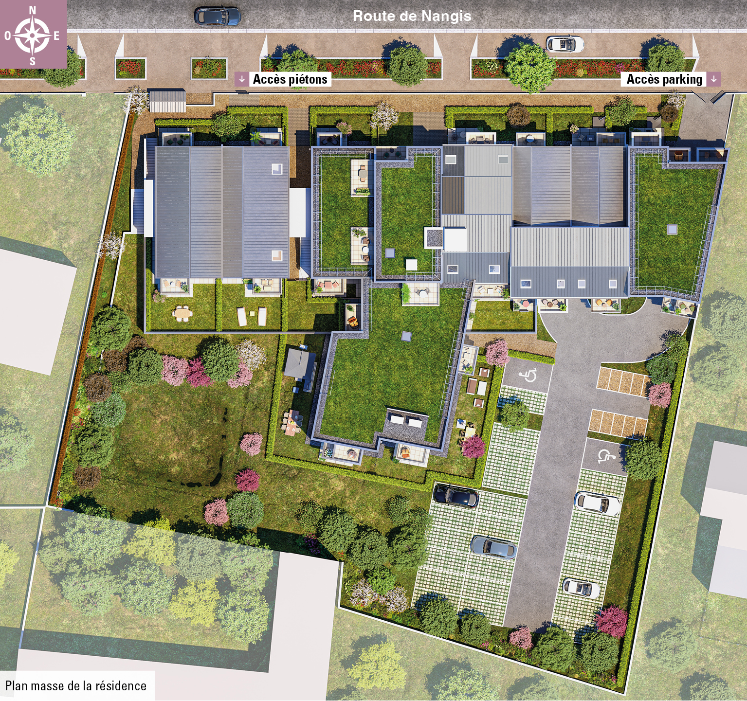 Fondu dans le paysage environnant, cette résidence adopte une architecture séquencée, rythmée par des décrochés de façade et des toits pointus, évoquant les maisons voisines. Les appartements se déclinent en un large choix d’agencements, d’exposition et de surfaces ouverts sur des balcons.