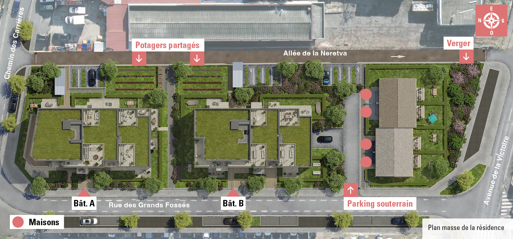 Cette nouvelle réalisation s’entoure de verdure et accueille d’agréables jardins potagers. Les appartements, du studio au 4 pièces, s’ouvrent sur de beaux extérieurs, jardins, balcons ou terrasses plein ciel en dernier étage.