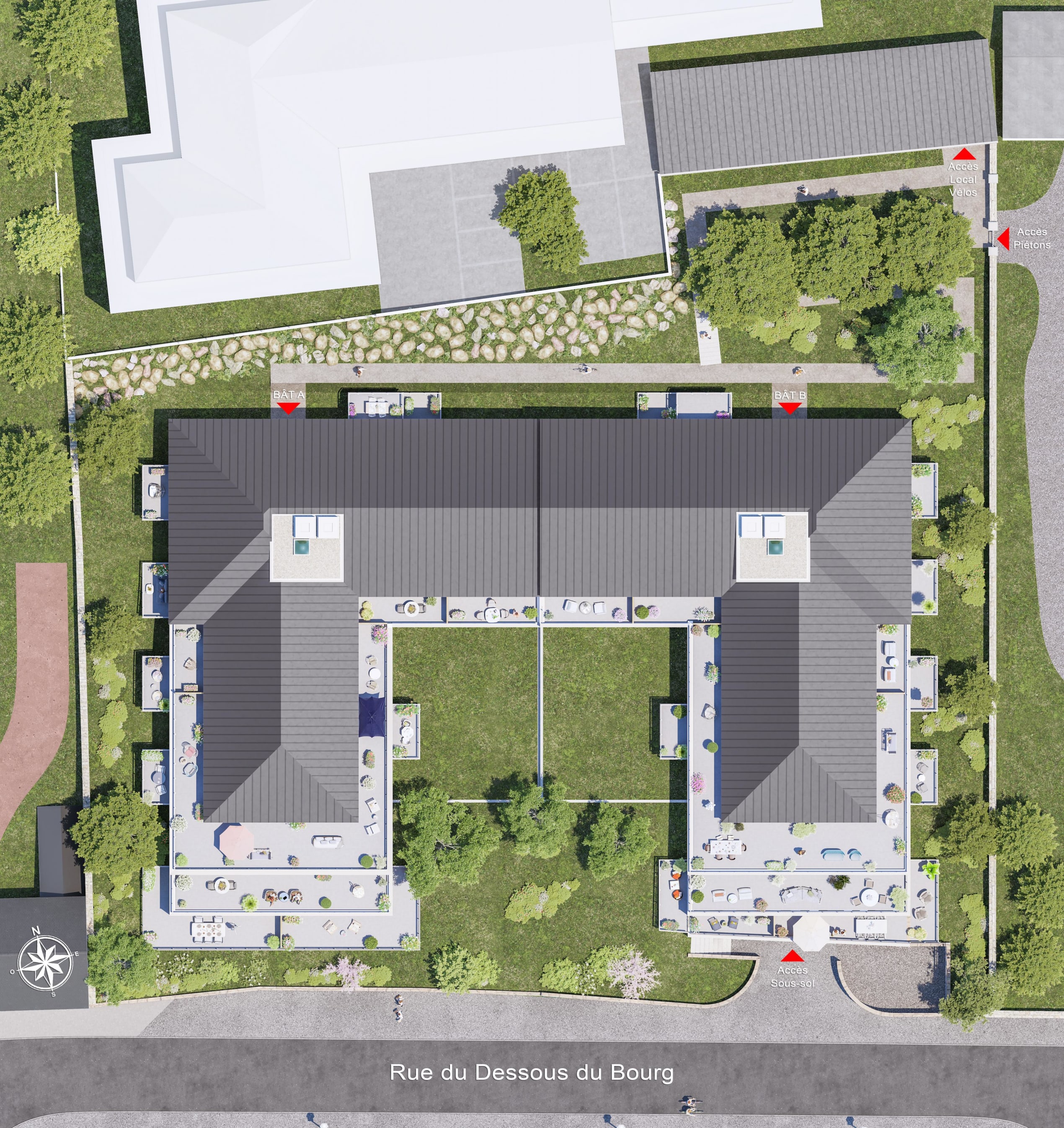 | Appartement B001 → | 41.94 m² | Rez-de-chaussée | Est | 1 place de parking (PK10) | Jardin(28 m²) Terrasse(8 m²) |