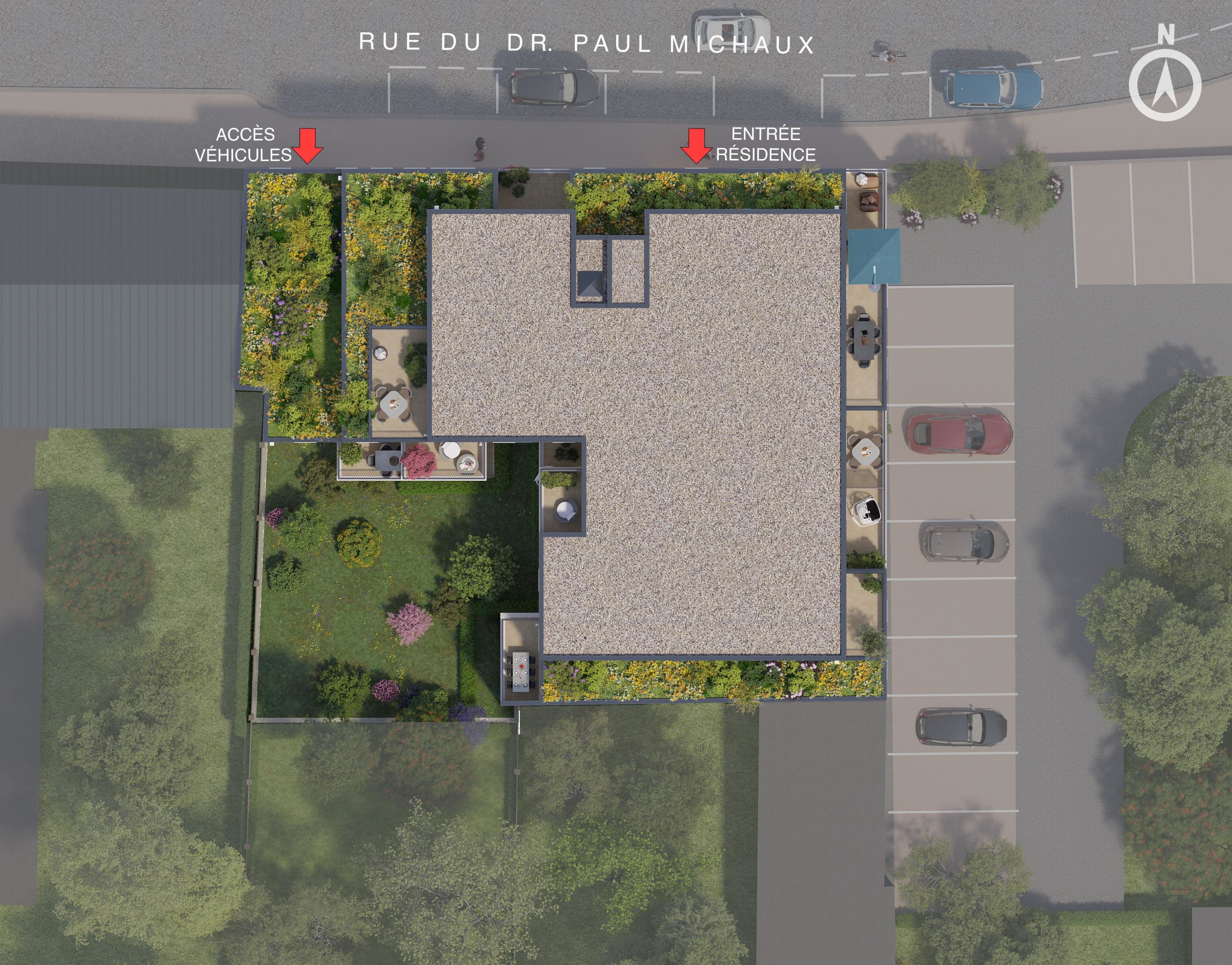 | Appartement A302 → | 58.29 m² | 3ème étage | Est | 1 place de parking (PK04) | Terrasse(14.2 m²) |
